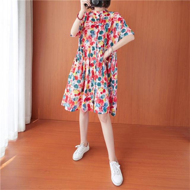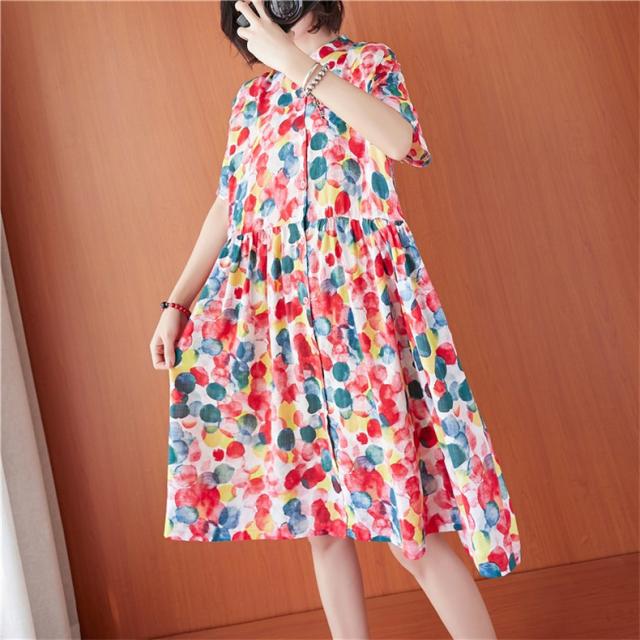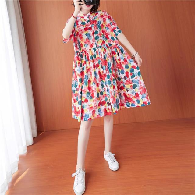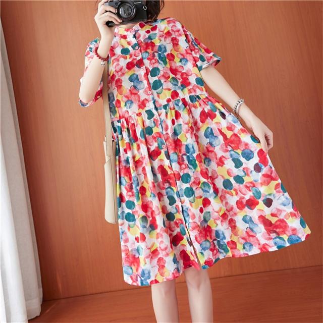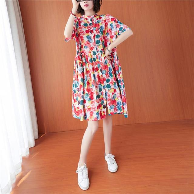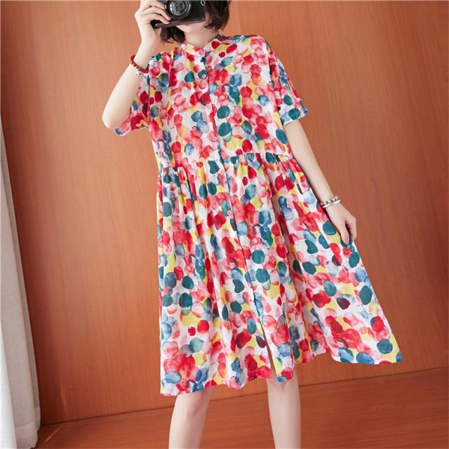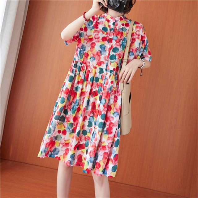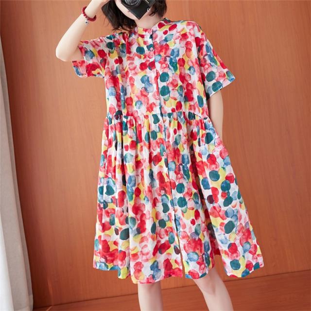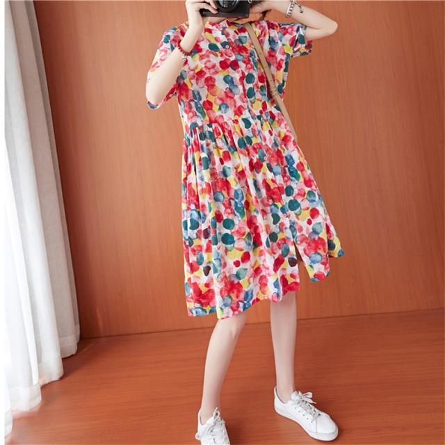 シャツワンピース 夏 レディース 膝丈ワンピース 綿 ドット柄 大人カジュアル オーバーサイズ 50代 40代 30代楽な着心地がいい