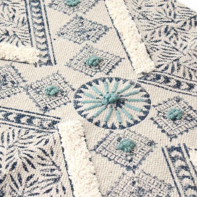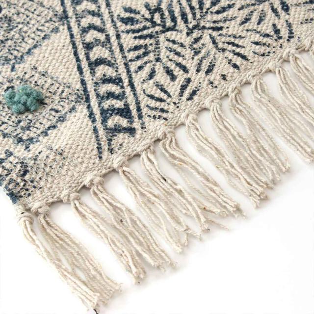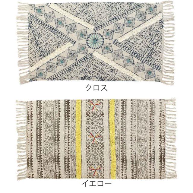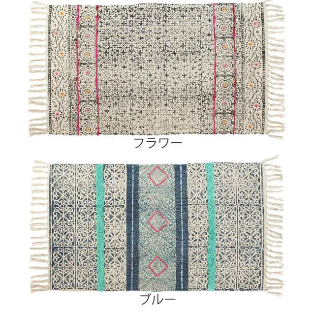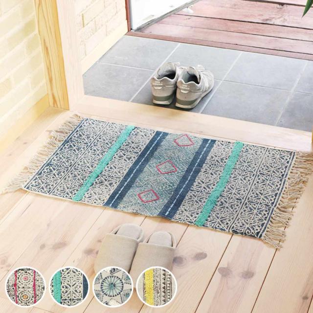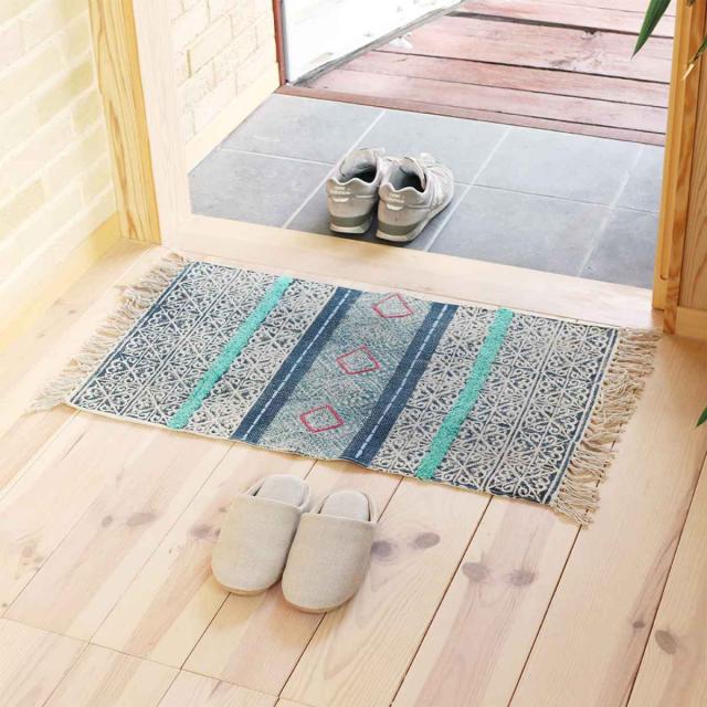 玄関マット 48×83cm 室内 ブロックプリント ( 玄関 マット 屋内 刺繍 フリンジ 角型 おしゃれ インテリア ドアマット 綿100% エントランス )