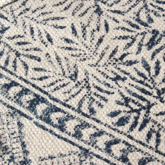 手彫りの木版を敷き詰めるようにスタンプし、丁寧に模様を作り上げるブロックプリント。そこに石を擦り付けて風合いを出す洗い加工を加えています。職人さんの手仕事ゆえの特徴を商品の一つの味わいとしてお楽しみください。