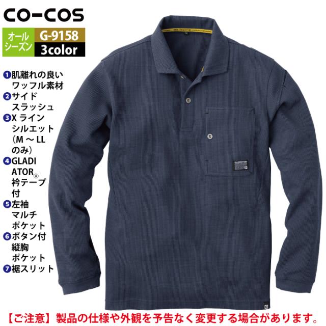 コーコス 作業服 春夏用 G-9158 長袖ポロシャツ 3L
