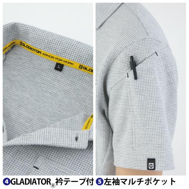 ◇機能:肌離れの良いワッフル素材・サイドスラッシュ・Xラインシルエット(M~LLのみ)GRADIATOR衿テープ付・左袖マルチポケット・ボタン付縦胸ポケット・裾スリット