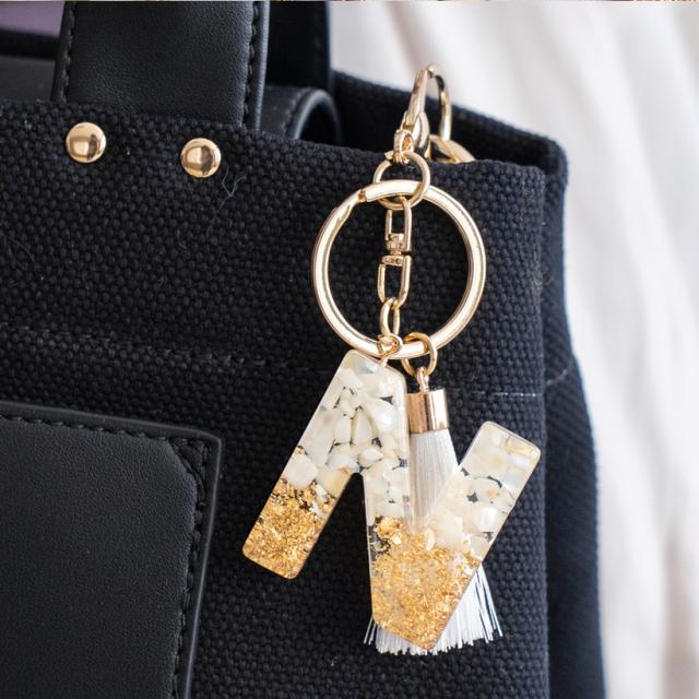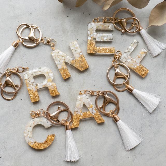 バッグチャーム イニシャル ハーバリウム キーホルダー 大人 かわいい おしゃれ フリンジ 推し活 スケルトン タッセル レディース バックチャーム キラキラ ファッション オシャレ ゴールド ホワイト 春夏 nsa-c30141 プレゼント