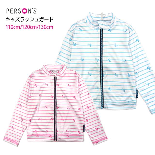 【メール便送料無料】PERSONS キッズ用長袖ラッシュガード 水着 110 120 130 長そで 33064441 ジップアップ No.sw3427