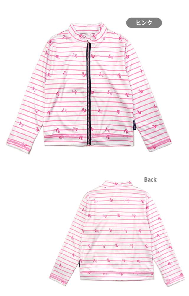 ボーダー柄にリボン&イカリプリントをプラスしたかわいいデザイン。