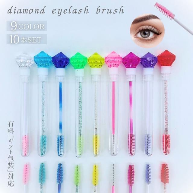 【在庫限り】まつげ ダイヤモンド ブラシ 10本セット 9色カラー クリアケースブラシ ピンク アイラッシュメイク メイクブラシ 眉ブラシ スクリュー まつ毛コーム アイラッシュ まつげコーム まつ毛エクステ用 睫毛エクステ用 眉ブラシコーム 使い捨て