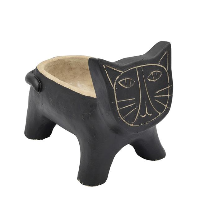 プランター おしゃれ 屋外 アンティーク 鉢 アフリカン 猫 民族模様 手作り プランター L ブラック 観葉植物 ネコ 底穴あり 小さい 小物入れ