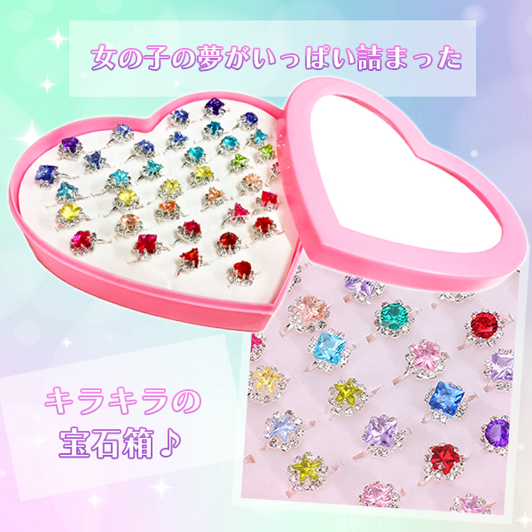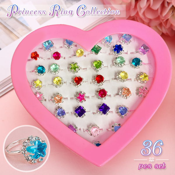 【最安値挑戦中】プリンセスリングコレクション 36ピース セット 指輪 おもちゃ 宝石 ジュエリー 子ども こども 子供 女の子 かわいい お祭り 縁日 プレゼント クリスマス 誕生日 幼稚園 プチプラ ハート スター フラワー リング コレクション ネコポス送料無料!