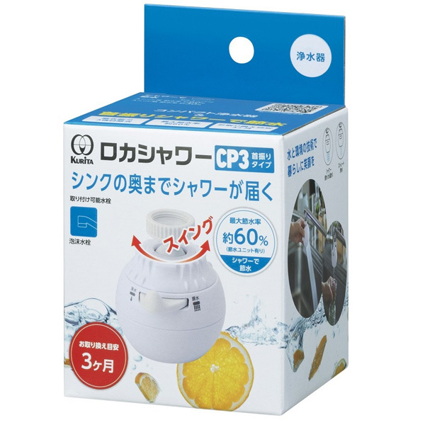 浄水器 ロカシャワーCP3首振りタイプ | 浄水蛇口 蛇口直結型 ろ過器 首ふり 家庭用 使い切り 塩素除去