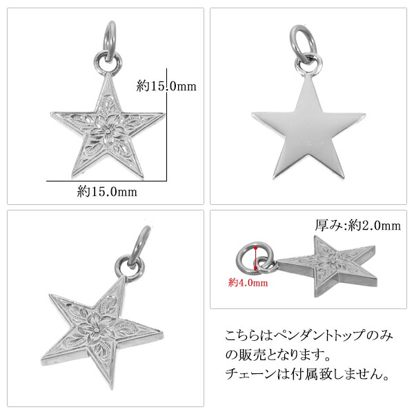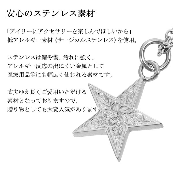 ステンレス ハワイアンジュエリー スター ペンダントトップ (チェーン無し) ネックレス サージカルステンレス 金属アレルギーフリー ニッケルフリー