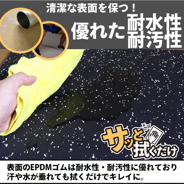 EPDMゴム製の表面は耐水性・耐汚性に優れており、汗や水が垂れても拭くだけでキレイに。