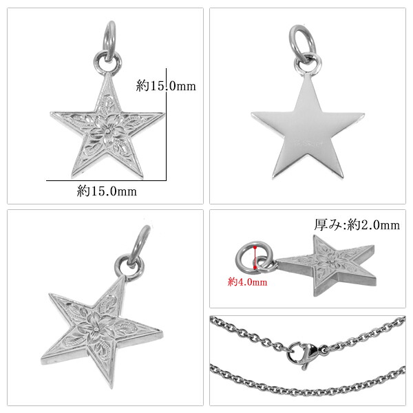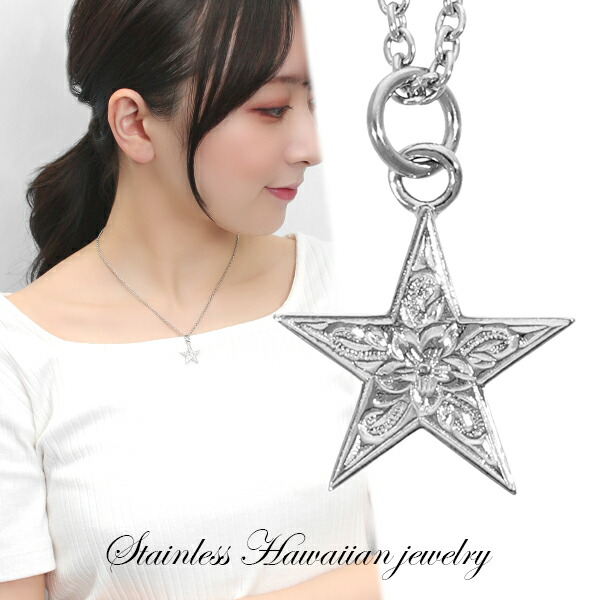 ステンレス ハワイアンジュエリー スター ネックレス ペンダント サージカルステンレス 金属アレルギーフリー ニッケルフリー ハワイアン ハワイ 彫刻