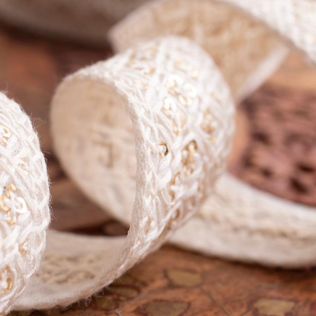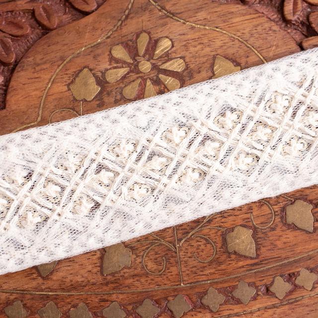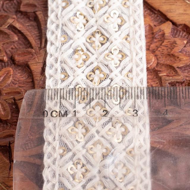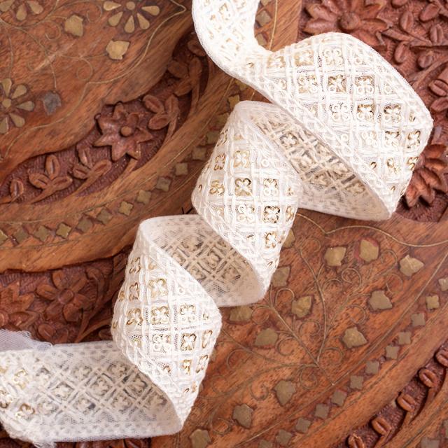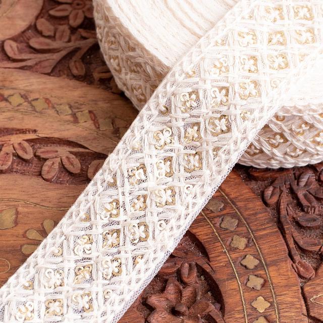 チロリアンテープ メーター売 柔らかなコットンに金糸が美しい スパンコールとゴーダ刺繍〔幅 約3.5cm〕 お花と格子 / Gota embroidery ラジャスタン インド刺繍 アジア 布 ファブリック エスニック