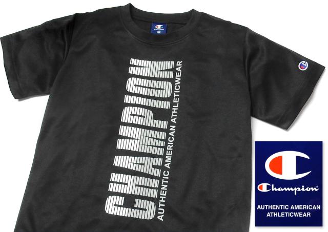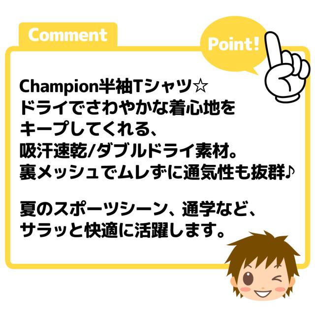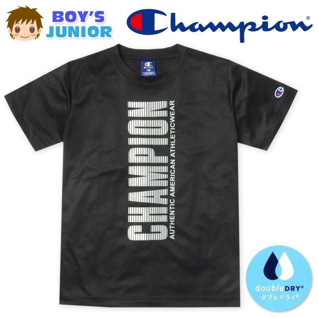 【送料無料】男児 ジュニア 吸汗速乾 半袖 Tシャツ Champion/チャンピオン 裏メッシュ 通気性 ダブルドライ 子供服 男の子 140cm 150cm 160cm td-0647b-bk【メール便対応】