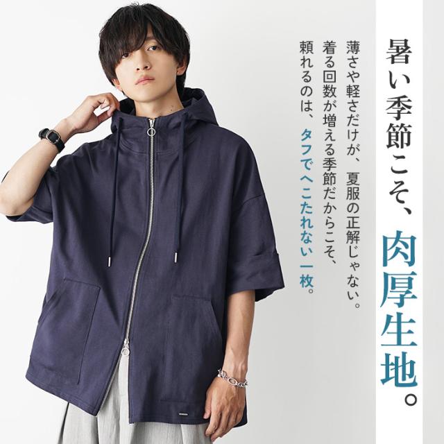 ジップアップパーカー 半袖 パーカー メンズ 半袖 パーカー 薄手 メンズ 大きいサイズ 半袖パーカー ビッグシルエット パーカー 夏 パーカー 半袖 メンズ ビッグパーカー 無地 ネイビー ホワイト メンズ 夏用 韓国 ファッション マイノリティ 夏服 夏 minority マイノリティ