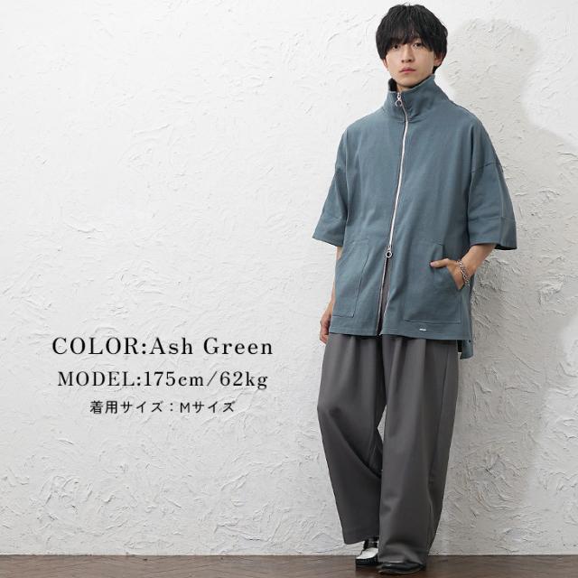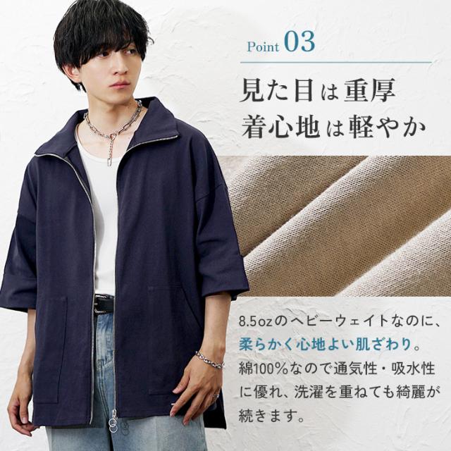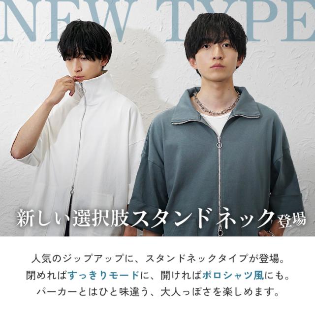 ヘビーウェイトのしっかりとした質感とダブルジップのデザインはそのままに従来の「パーカータイプ」に加え、新たにフードを無くしすっきりとしたスタイルを楽しめる「スタンドタイプ」が登場。ロールアップされた袖や前後差のある丈感が着るだけでオシャレを叶える5分袖のトップスです。
