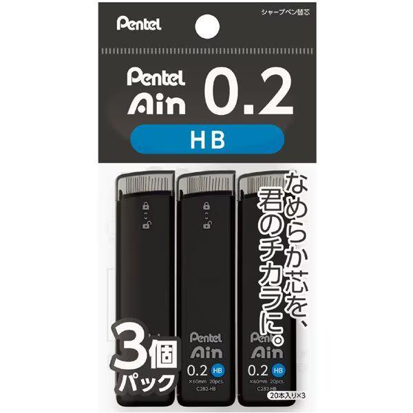 (まとめ買い)ぺんてる シャープペン替芯 Pentel Ain(ぺんてるアイン) 0.2mm HB 3個パック パック入 XC282HB-3P 〔×5〕 【北海道・沖縄・離島配送不可】