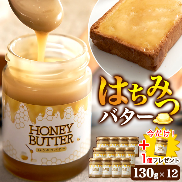今だけ1個おまけ付き! はちみつバター 12個セット 130g×12 簡単 塗るだけ ハニーバタートースト パンのおとも 美味しい ご褒美 調味料 蜂蜜バター 12瓶 ジャム ペースト 朝食 昼食 ブランチ パンケーキ 自宅 自分用 贈答 贈物 プレゼント グルメ 蜂蜜 はちみつ バター