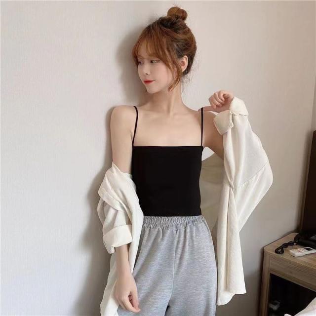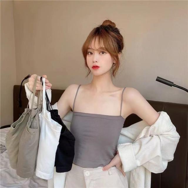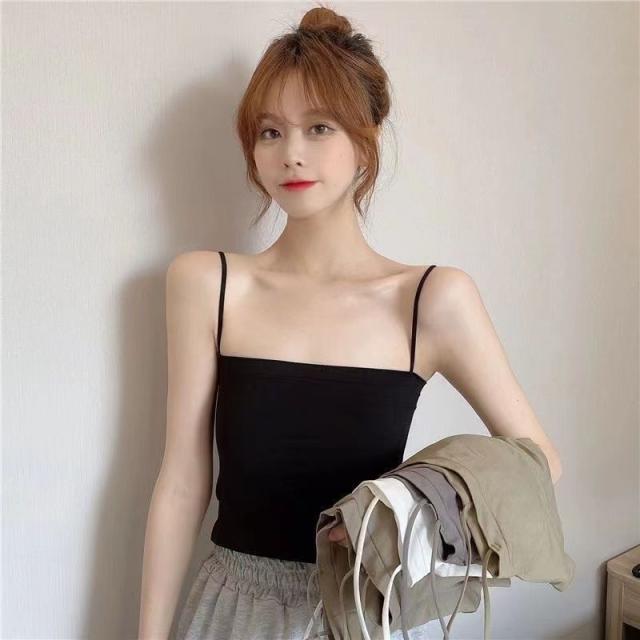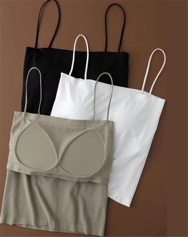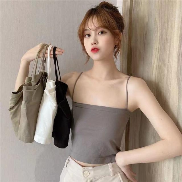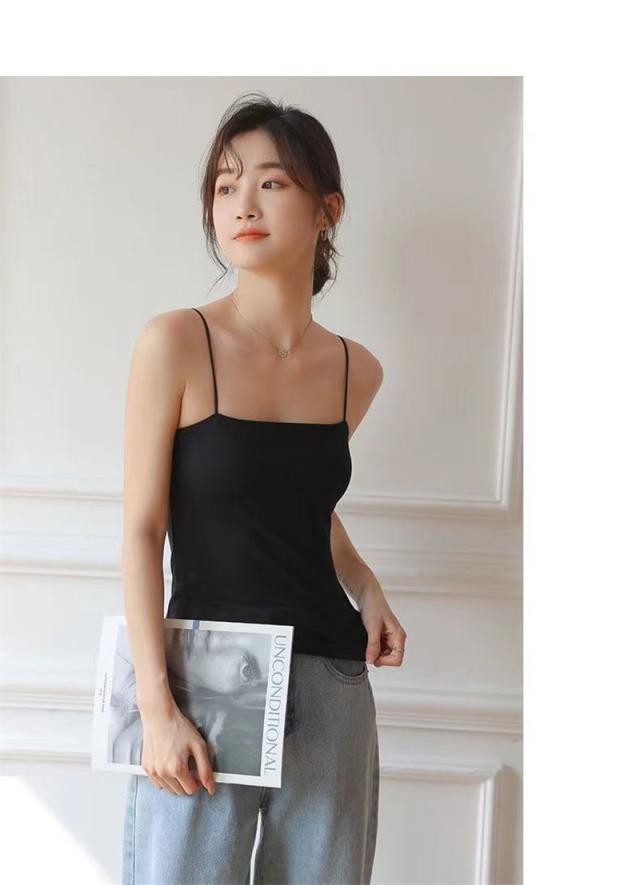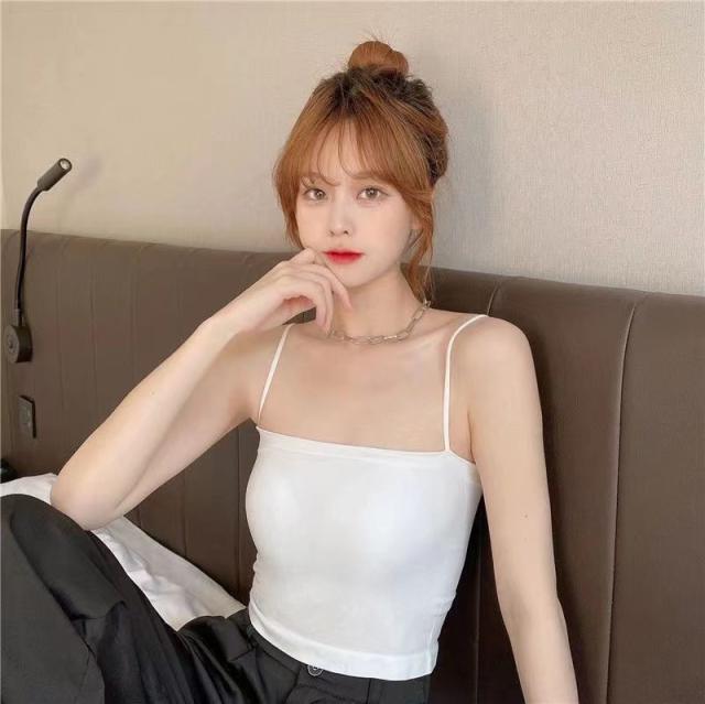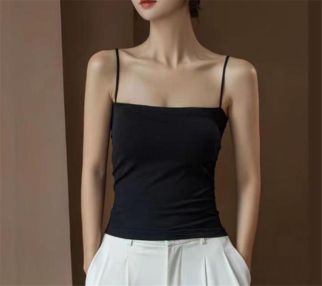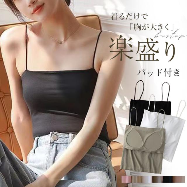 激安 キャミソール レディース ショート丈 無地 タンクトップ ノースリーブ トップス インナー パッド付き シンプル カジュアル