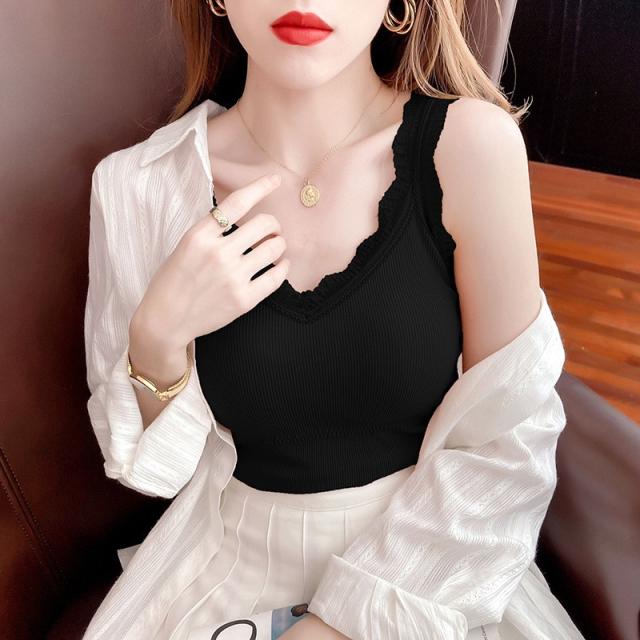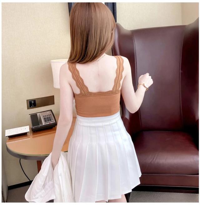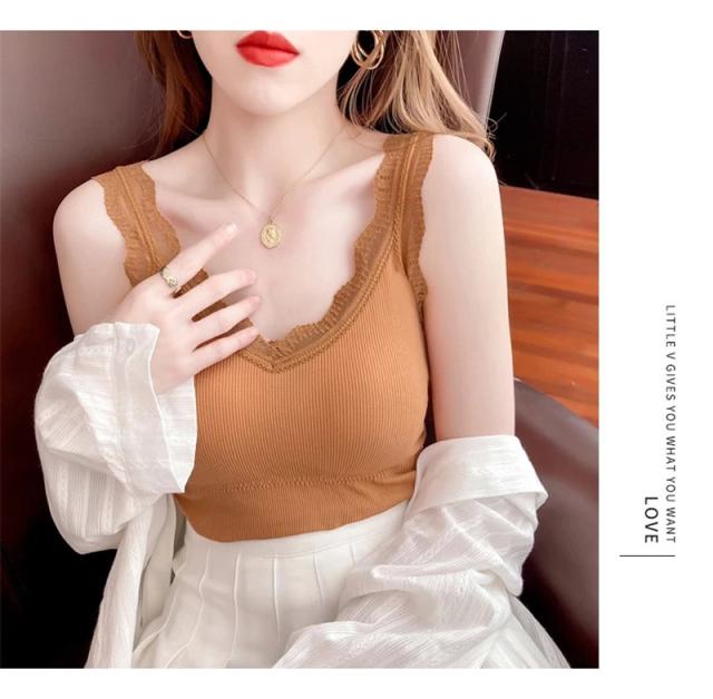 セール キャミソール レディース ショート丈 無地 タンクトップ ノースリーブ トップス インナー パッド付き シンプル カジュア