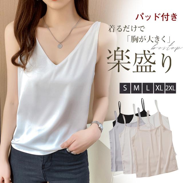 キャミソール レディース Vネック 無地 タンクトップ ノースリーブ トップス インナー カジュアル コンフォート リラックス 母
