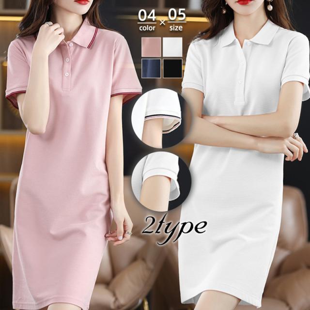 ワンピース レディース 開襟 マキシワンピース 無地 半袖 ロングワンピース シンプル カジュアル 体型カバー ストレート 着痩せ