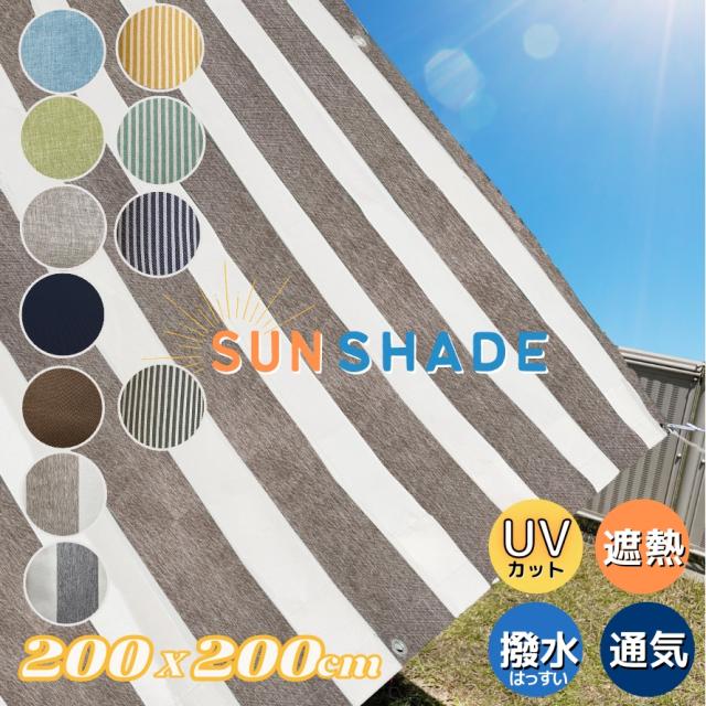 日よけ シェード サンシェード 選べる 色 柄 【200 × 200cm】 日除け おしゃれ 遮光 断熱 撥水 UVカット すだれ 熱中対策 タープ 省エネ 節電 無地 ストライプ