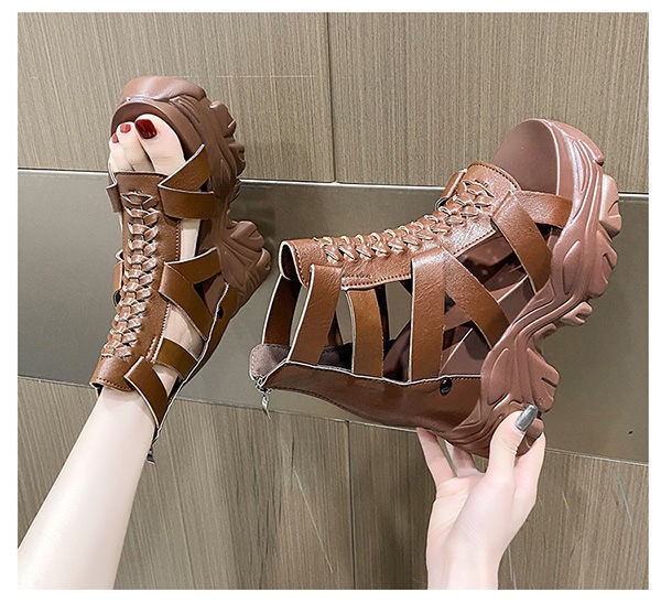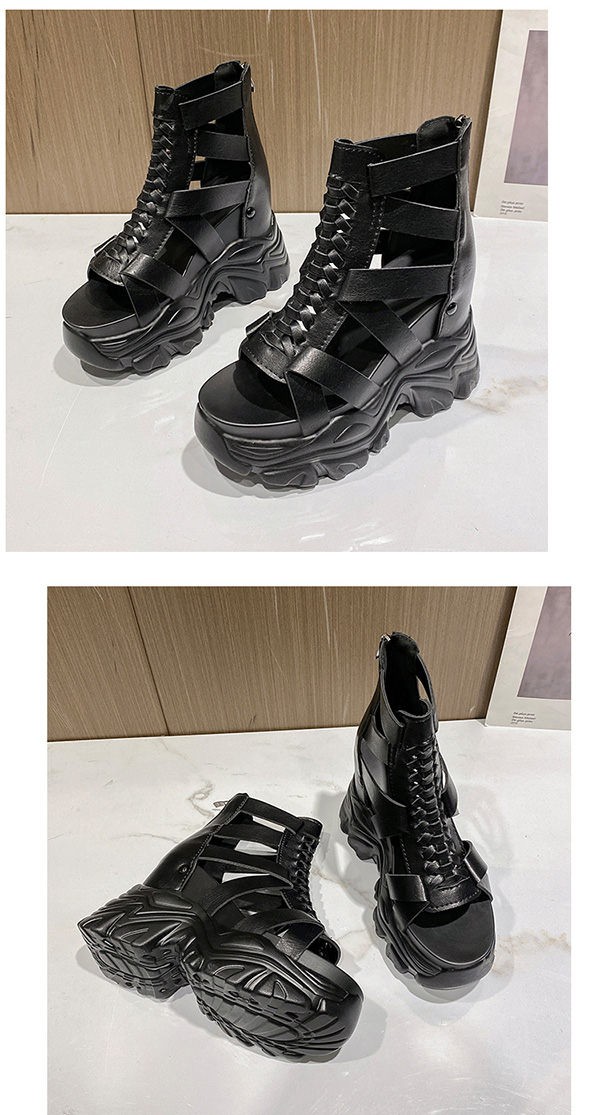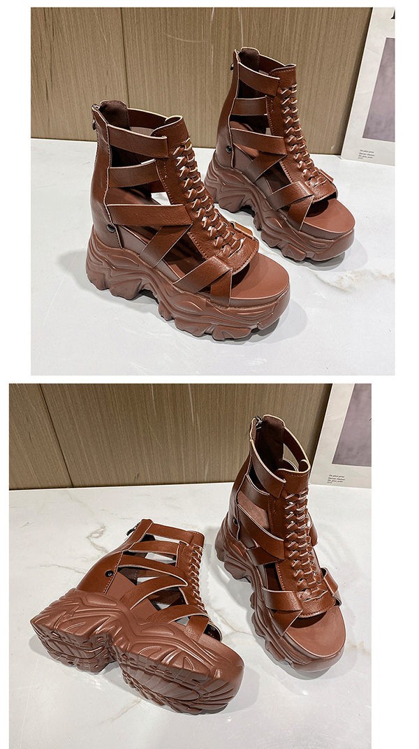 【商品名】厚底サンダル ブーツサンダル レディース 10.5cm UP グラディエーターサンダル サマーブーツ レザーシューズ ウエッジソール PU革 通勤 オフィス 歩きやすい 背が高く見える クールビズ 美脚長脚 トレンド ja076zbzbl9