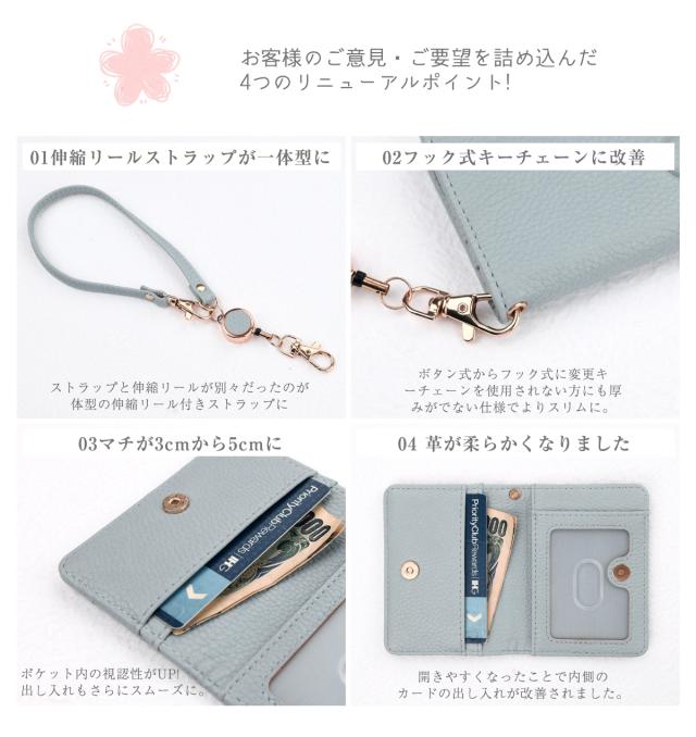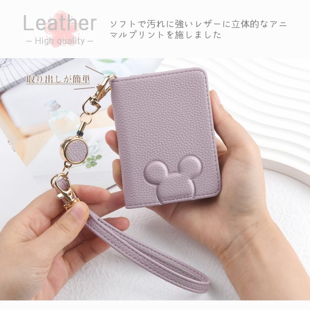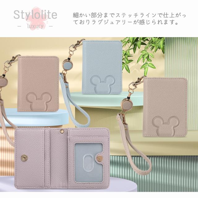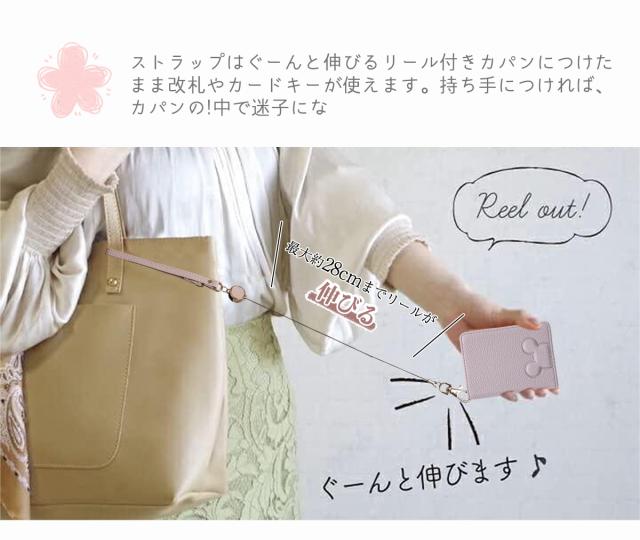 「三太郎の日P10倍〜限定100円クーポン」パスケース 定期入れ レディース 二つ折り リール付き 2面パスケース カードケース ICカード シンプル 無地 大人可愛い おしゃれ 落ちない 伸びる 通勤 通学 プレゼント ギフト