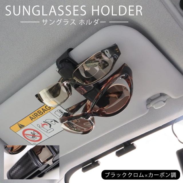 車用 サングラス ホルダー クリップ ブラッククロム × カーボン調 1個 新品 サンバイザー メガネ 眼鏡 カード チケット カー用品 自動車 サングラスホルダー バイザー ホールダー