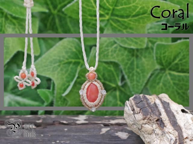 ピンクコーラル『桃色珊瑚・コーラル』マクラメ編みネックレス5