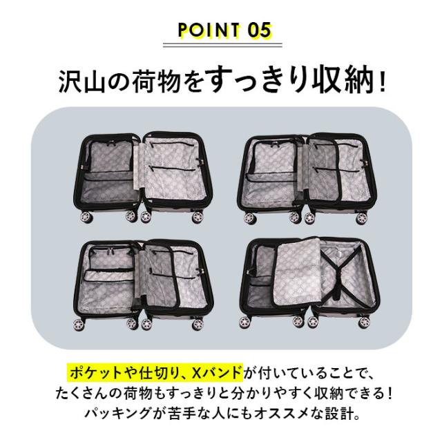 | 商品説明 | ・1〜2泊程度の旅行や遠征にちょうどいい「HeM ヘム リム キャリーケース」(Sサイズ)が発売! 【機内持ち込みサイズ】 ・航空機の機内持ち込みに対応したサイズで、そのまま飛行機に持ち込みOK!旅行だけでなく遠征のスポーツ試合や出張にも活躍。 【TSAロック】 ・海外旅行も安心。本体と付属の南京錠にはTSAロック搭載で、海外のセキュリティチェックもスムーズに通過。あなたの大切なお荷物をしっかりと守る! 【ファスナーで簡単拡張】 ・マチサイドのファスナーをグルっと開けるだけで簡単にマチ幅を拡張できる拡張機能を搭載(容量約36L→43Lに変更)。 出張で必要な書類から旅行のお土産まで、思い切って収納可能。 【アクセスしやすいトップオープン】 ・旅行中にすぐに取り出したい小物の収納に最適なトップオープンポケット。 ・ガバッと開くのを防ぐ固定式バックルベルト機能も搭載。 ・トップオープンポケットを使わないときはスナップボタンで収納でき、直接メイン収納にアクセスできる作り。 【多機能収納とポケット】 ・パッキングがしやすい計9ポケット機能♪中身がごちゃつかず誰でも整理整頓しながら収納。 ・開いて右側奥の収納ルームには洋服や小物を固定できるベルト付き。 ・左側には小物が飛び出さないメッシュポケット仕様。 【トップハンドルとサイドハンドル付き】 ・トップハンドルとサイドハンドル付きで、持ち運びもラクラク。どんなシーンでもスムーズに持ち運びが可能! 【高さ調節ができるハンドル】 ・ハンドルは4段階調節ができ、女性から男性まで移動しやすい高さに調節可能。 【ポケット仕様】 [メインルーム] ・右側・・・ファスナーポケット×2、収納ルーム(固定ベルト付き) ・左側・・・メッシュポケット×1、ファスナーポケット×1 [フロント(トップオープン)] ・ファスナーポケット×3(固定式バックルベルト×2付き) 【付属品】 ・ダイヤルナンバーロック式の南京錠 |