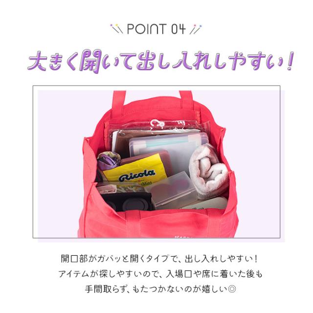| 商品説明 | ・おしゃれに楽しく推し活☆HeM(ヘム)から、デイリー使いもできる「推し活トート」が新登場。 【たっぷり入る縦長トート】 ・応援グッズも、お出かけに必要な小物も一緒にIN♪全部まとめて、推しに会えるライブやイベントへGO! 【オープン開口】 ・開口部はガバッと開いて、出し入れがスムーズなオープンタイプ。 【ジャンボうちわもすっぽり】 ・アーティストグッズの大きめうちわを収納できる、オープンポケットを装備!上部の吊りポケットを被せれば、外からは見えないつくり◎ 【小物収納もラクラク】 ・L版サイズの写真が入るポケット、ペットボトルやペンライトを立てて収納できるホルダー。ファスナー式の吊りポケットには、チケットなどの大事なアイテムを収納。 【持ち運びもラクラク】 ・軽量で柔らかな生地感。折りたためばコンパクトサイズになるので、遠征先でのサブバッグとしても活躍! 【サッと肩掛け】 ・ハンドル部分は長めに設計されており、厚手のアウターの上からも肩掛けOK。 【選べるカラーバリエーション】 ・推しのメンバーカラーをチョイス♪カジュアルに持てるシンプルデザインで、普段使いのバッグにも! 【ポケット仕様】 ・内側:大型オープンポケット×1、ファスナー式吊りポケット×1、オープンポケット×2、マルチホルダー×2 |