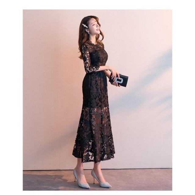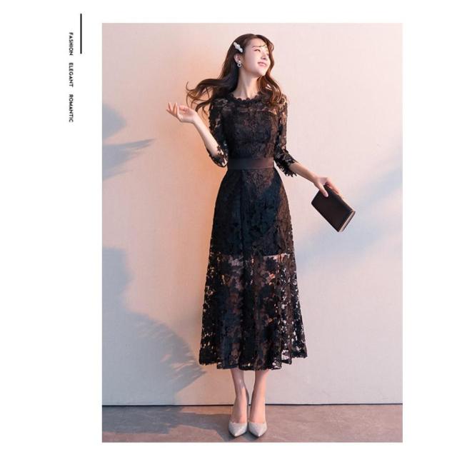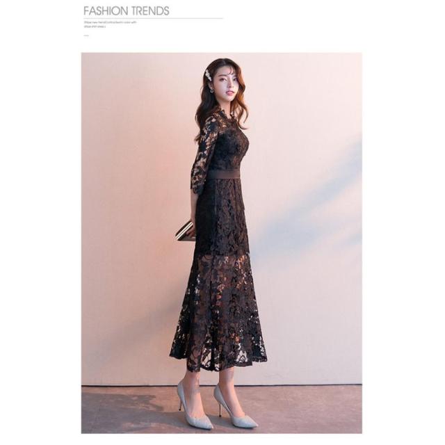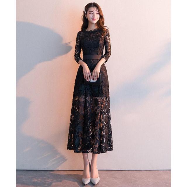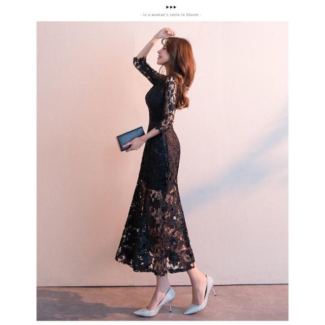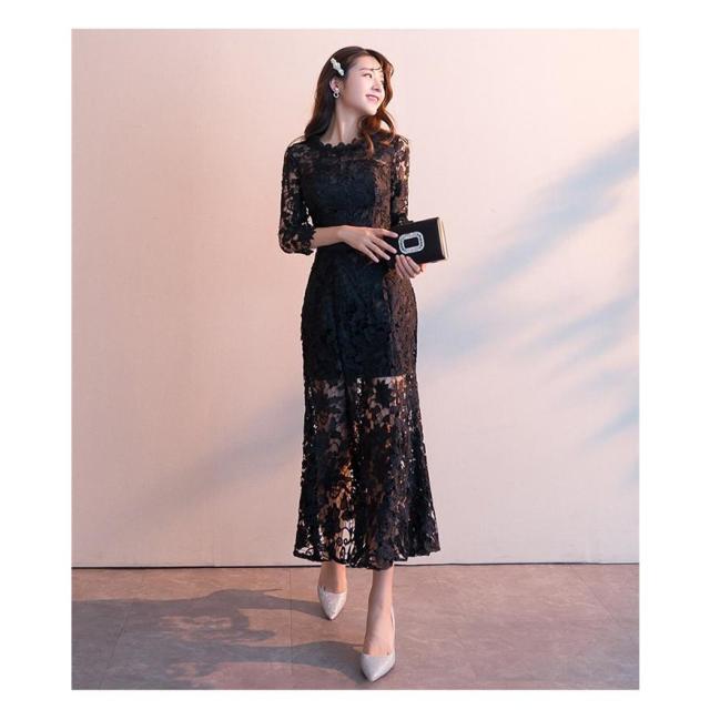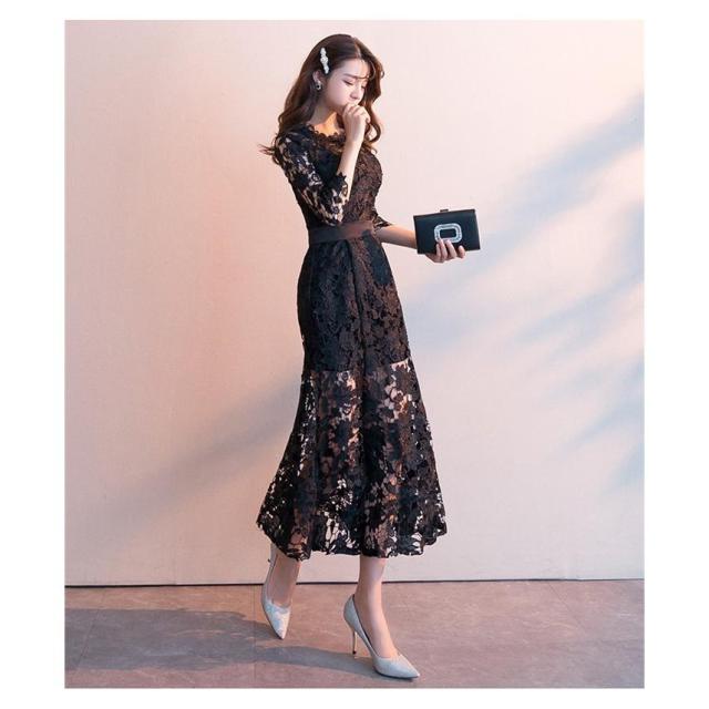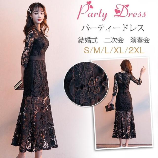 パーティードレス 結婚式 ドレス ロングドレス 演奏会 レースドレス 黒 ブラックドレス 二次会ドレス 発表会 ウェディングドレス パーティー お呼ばれドレス