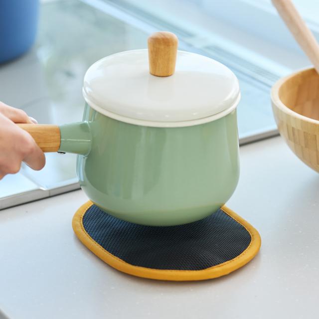 落ち着きのあるカラーがお洒落なポットホルダーです。アツアツのお料理もサッとテーブルに並べることができます。また、コンパクトなサイズで圧迫感がなく、シンプルなデザインが食卓に馴染みやすいです。キッチンでの便利さはもちろん、アウトドアなどにもおすすめです。