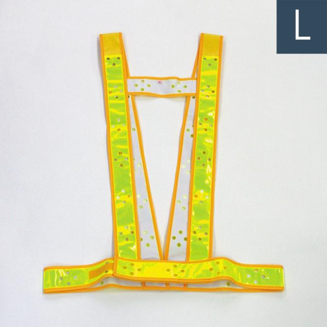 ●メッシュを使用せず、反射材裏の補強材も無く、さらに穴も開けて軽量化を図りました。(反射タスキと比較=M:200g→112g/L:221g→126g)