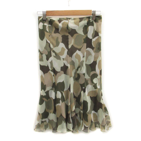 【中古】マテリア MATERIA トランペットスカート タイトスカート ミモレ丈 カモフラ柄 迷彩柄 38 カーキ レディース