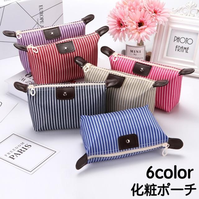 化粧ポーチ コスメポーチ 小物入れ メイクポーチ メイクアップポーチ 折りたたみ 折り畳み ストライプ柄 縞々 しましま ジッパ