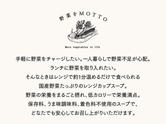 野菜をMOTTO ご自宅用 スープ 8個 セット おまかせ | レンジ 1分 野菜スープ レトルト 常温 長期保存 ストック 備蓄 常備 食品 食べ物 健康 ダイエット 美容 おしゃれ 低カロリー カップスープ 詰め合わせ 無添加 国産 野菜 簡単 手軽 贅沢 | 自宅用 送料無料