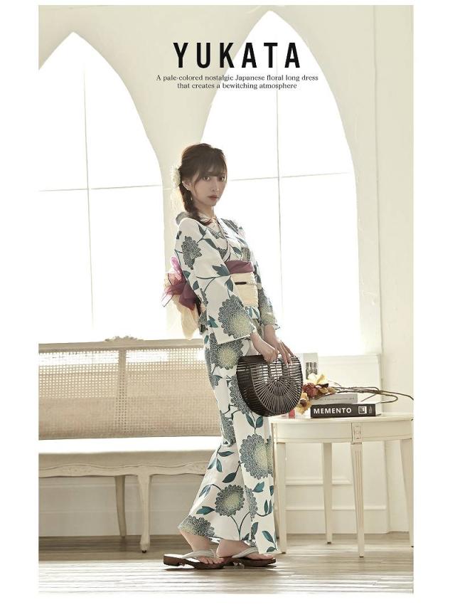2023 新作 浴衣 セット レディース ゆかた 帯 下駄 キャバ Ryuyu 白 セパレート 二部式 高級