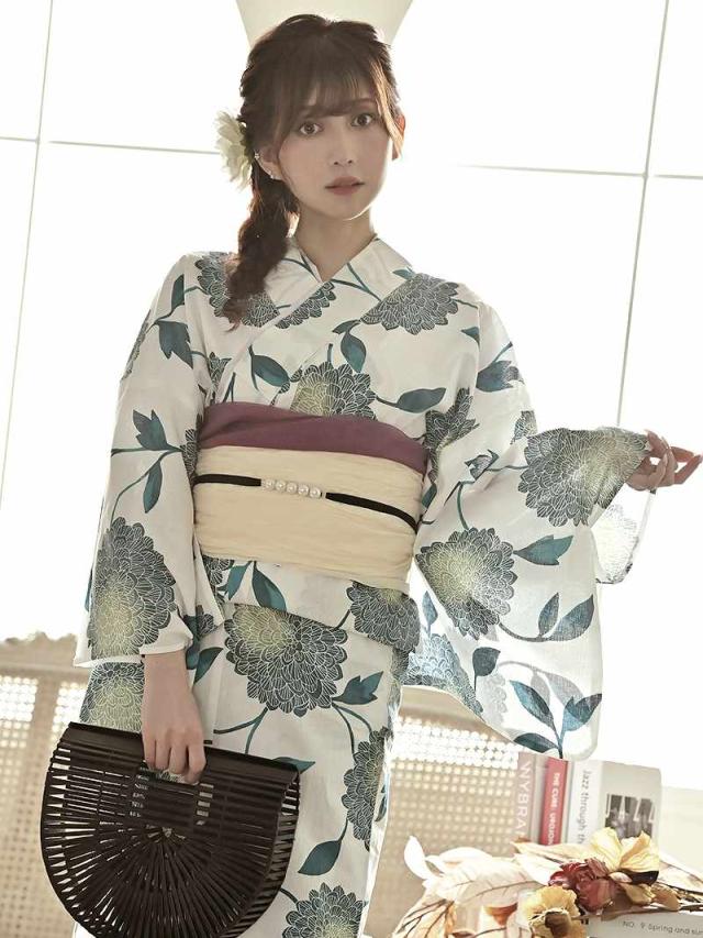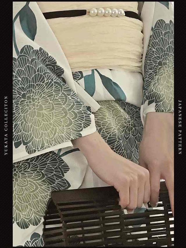 グリーンの菊と枝葉模様は、透け感溢れて涼しげに着こなしワンランク上の女子を演出♪