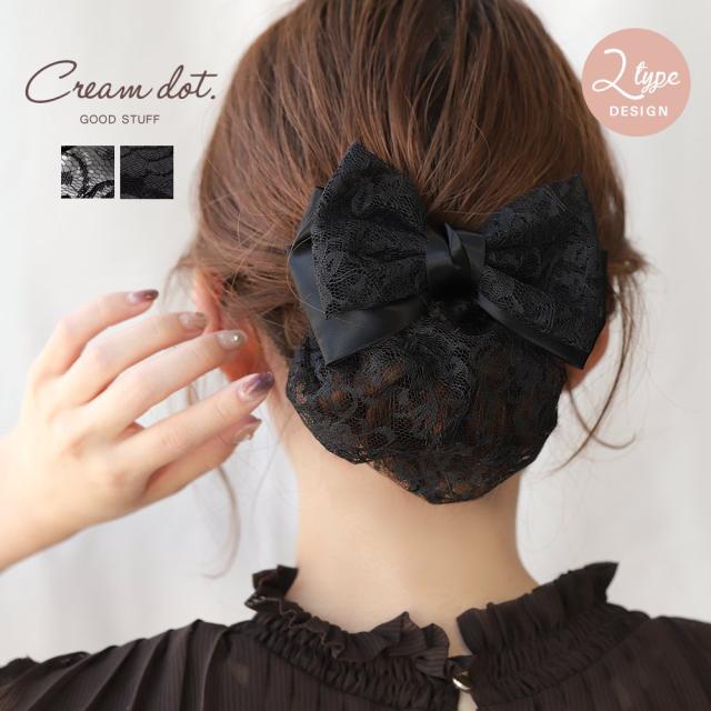 【ゆうパケットOK】シニヨンネット バレッタ リボン お団子 シニヨン まとめ髪 髪留め お団子ネット お団子カバー ネット付きバレッタ 簡単 ポニーテール レース サテン調 2タイプ ヘアアレンジ 大人 ブラック