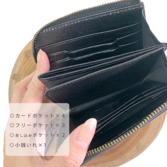 内側は小銭入れが×1、札ポケット×3、カード入れ×4、差し込みポケット×2。