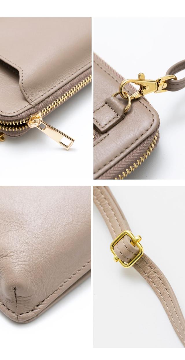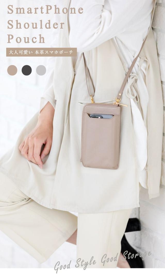 スマホポーチ レディース スマホショルダー 本革 斜めがけ お財布ショルダー ポシェット ミニショルダーバッグ お財布 縦型 ファスナー カード入れ 小銭入れ iPhone スマートフォン ブランド くすみカラー ギフト