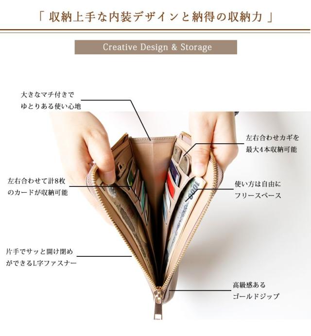 ◆小銭入れは外の背面に配置し、メインポケットと分けることで双方に収納力が向上、更に小銭入れの底を浅くすることで取り出し易く設計。