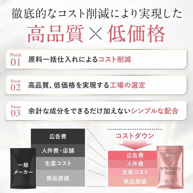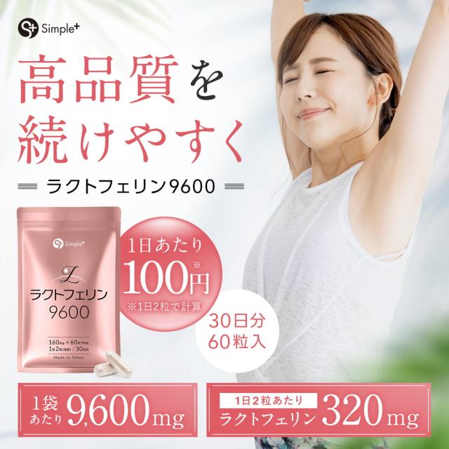 ラクトフェリン サプリ サプリメント 9600mg配合(1袋) 耐酸性カプセル 60粒 30日分 1日2粒320mg 子宮内フローラ 子宮 GMP認定工場製造 タンパク質 SIMPLE+