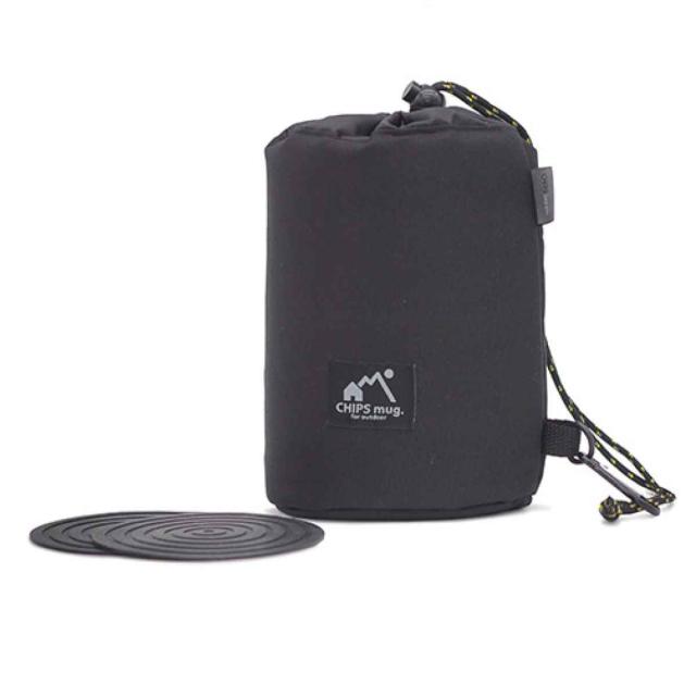 マグカップポーチ 380ml専用 CHIPS チップス ( マグカップ ポーチ 持ち運び バッグ シリコン コースター フタ 付き マグ カップ 380ml 専用 CHIPSマグ 収納 保管 持ち運び用バッグ アウトドア 黒 おしゃれ )