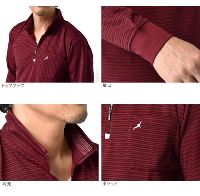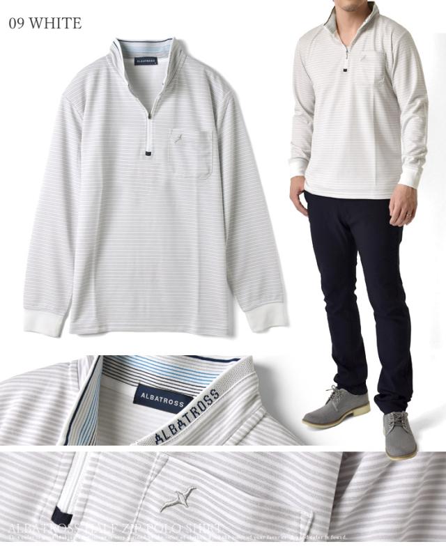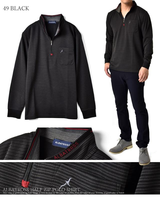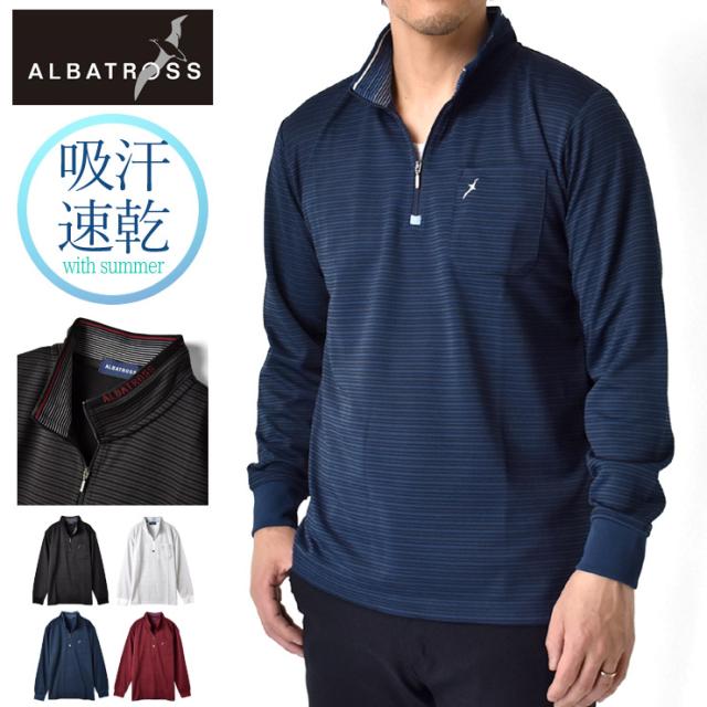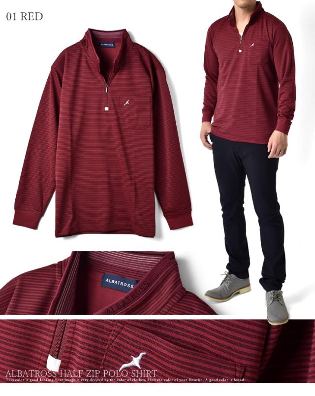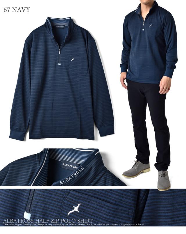 ハーフジップ メンズ 長袖 アルバトロス ALBATROSS ポロシャツ ゴルフ ジャガードボーダー 吸汗速乾 ドライ【B5N】【送料無料】【メール便2】【メンズ】