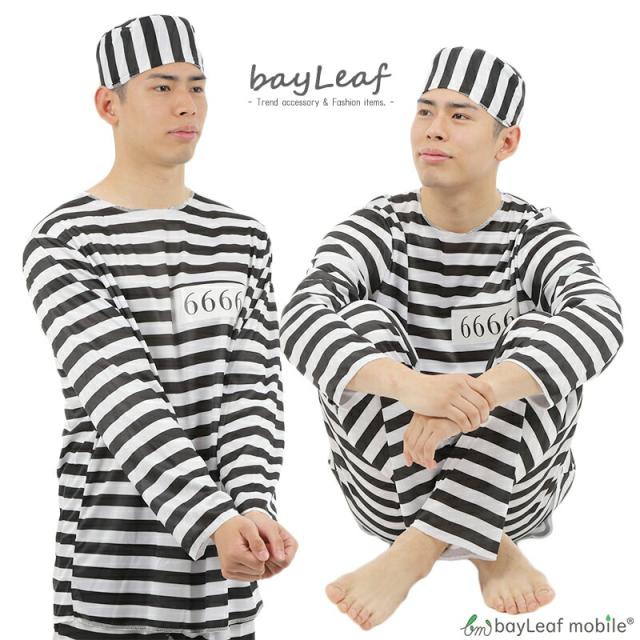 囚人 囚人服 コスプレ コスチューム 帽子付 衣装 仮装 変装 白黒 ボーダー 男性 メンズ 大人 文化祭 学園祭 パーティー ハロウィン