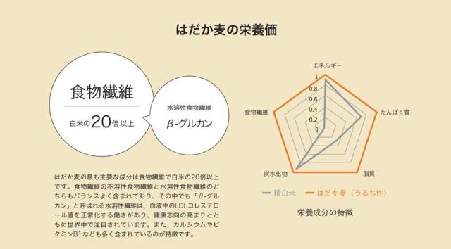 精麦した麦を使用。はだか麦は食物繊維が豊富で、健康と美容効果があると言われています。