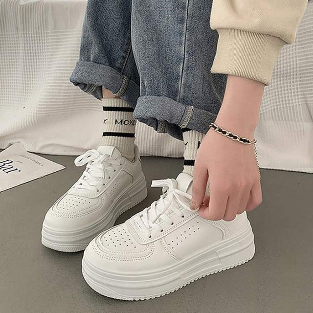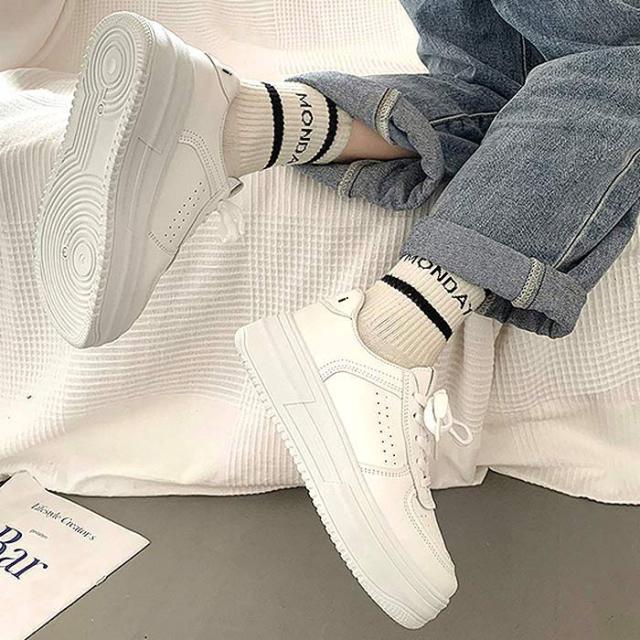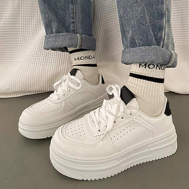 春新作 厚底スニーカー スニーカー ダッドシューズ レディース 白 黒 ローカット (送料無料)^bo-913^ ★